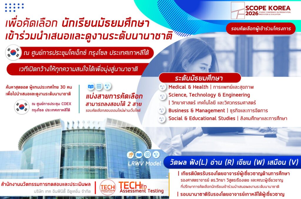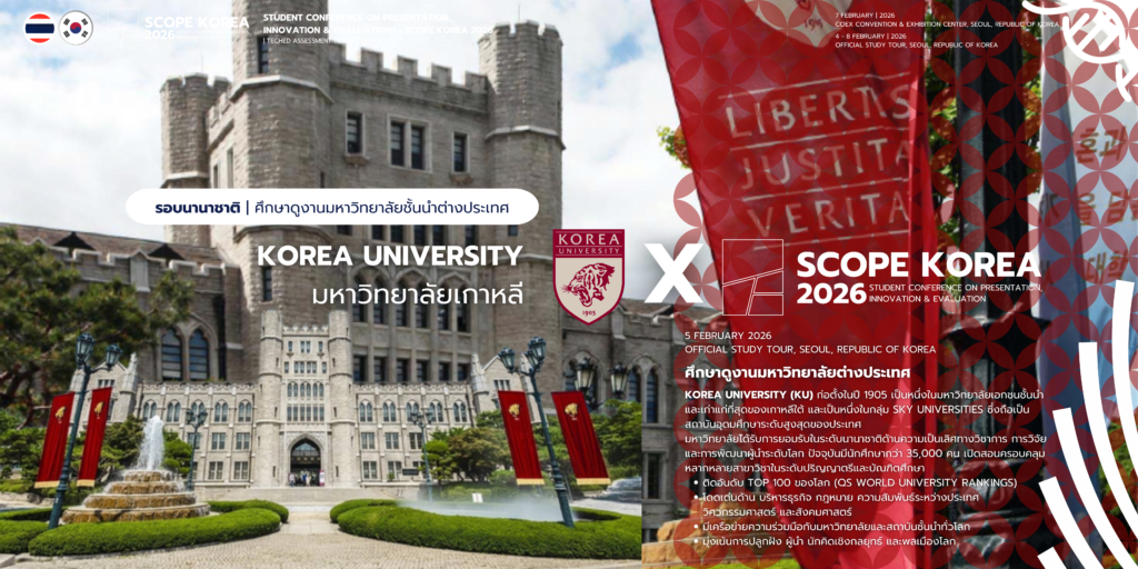 - กำหนดการนำเสนอและศึกษาดูงาน SCOPE KOREA 2026 : วันที่ 4 - 8 กุมภาพันธ์ 2569
